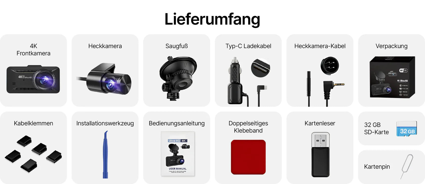 Das System erfasst die Fahrtroute aus zwei Perspektiven: Die Frontkamera dokumentiert den Fahrtweg mit breitem 170°-Weitwinkel und erfasst damit nicht nur die Straße vor dir, sondern auch Randbereiche und seitliche Bedrohungen. Die unauffällige Rückkamera sorgt für Sicherheit bei Auffahrunfällen und Parkplatz-Vorfällen.